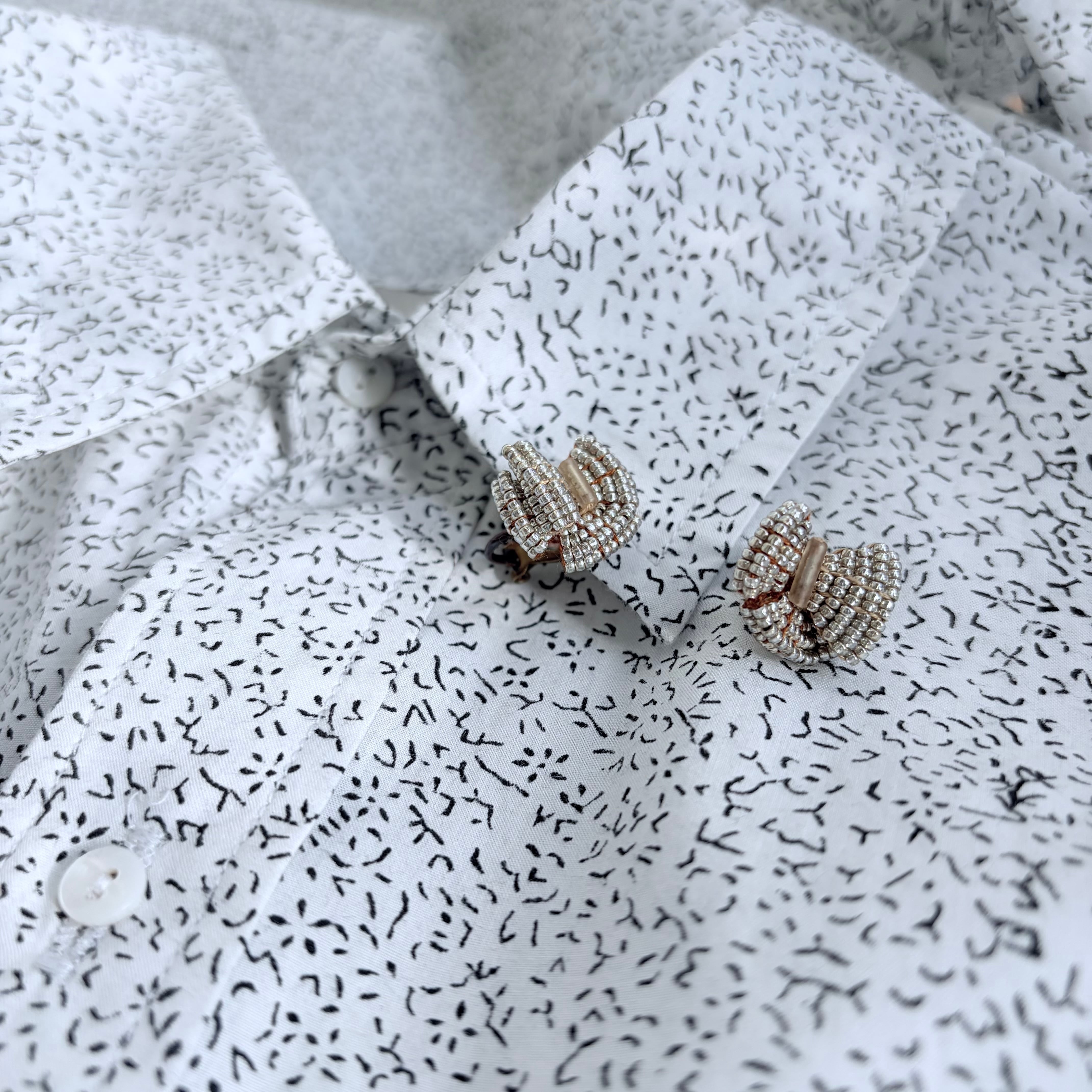 本体表:スパンコール(ゼラチン、ベークライト等)、ビーズ(ガラス等)、シルク